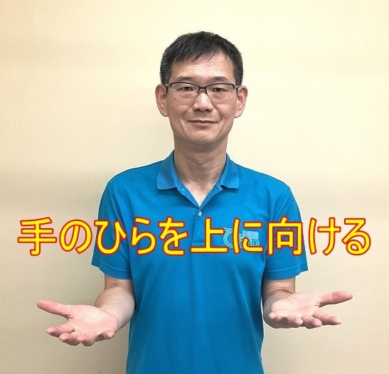 ・腕を下げた状態から、肘を曲げ手のひらを上に向ける