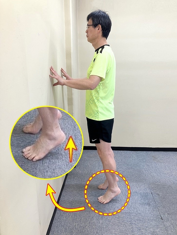 壁に手をつき、親指の付け根が床にグッと乗る感覚を
