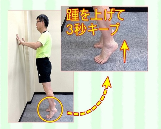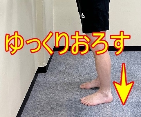 ・倒れない範囲で踵を上げて3秒キープしてからゆっくり踵を床につける