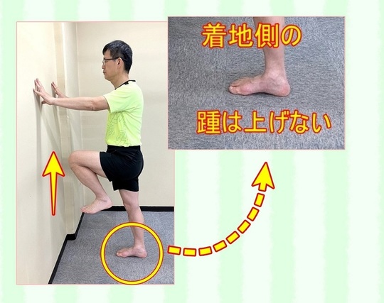 ※バランスを保てない人は壁に手をついて行う。回数の目安:5~10回