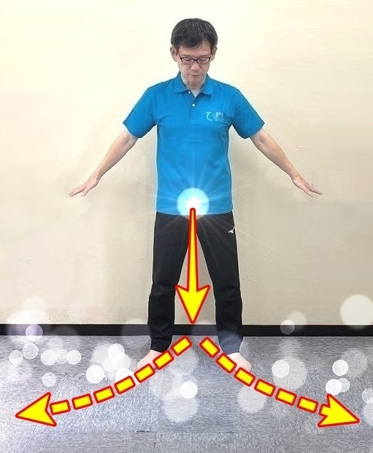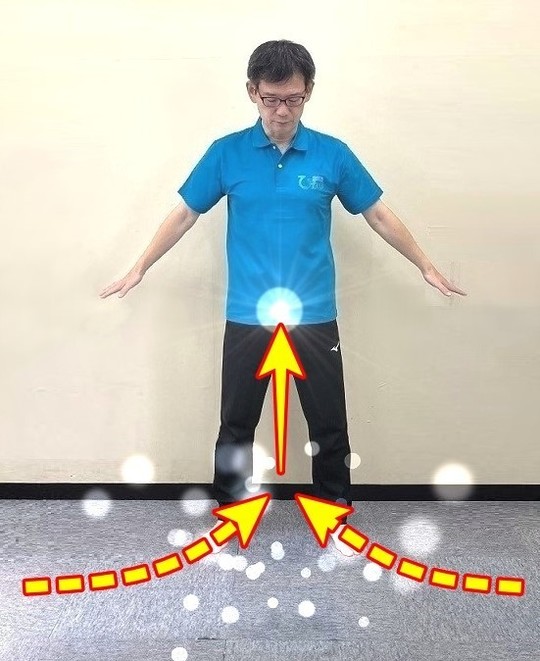 ③ 体の中心を通り、地面の下まで突き抜けて地に広がるイメージをする
