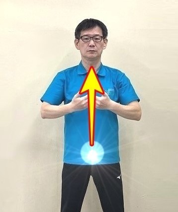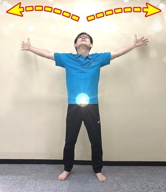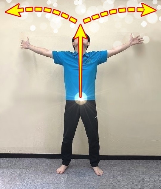 ① 天に向かい太陽の光をイメージして大きく手を広げる