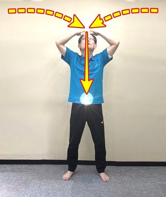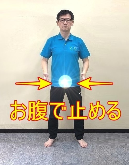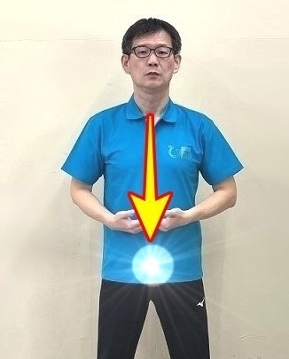⑥最後に丹田の位置で止めて元気玉の感覚を味わい、お腹の中に入れて終了